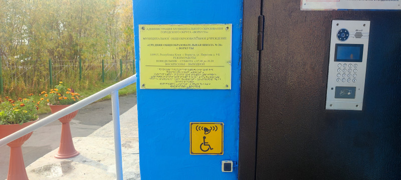 На территории МОУ «СОШ № 26» г. Воркуты созданы материально-технические условия, обеспечивающие безбарьерный доступ к образовательному процессу.